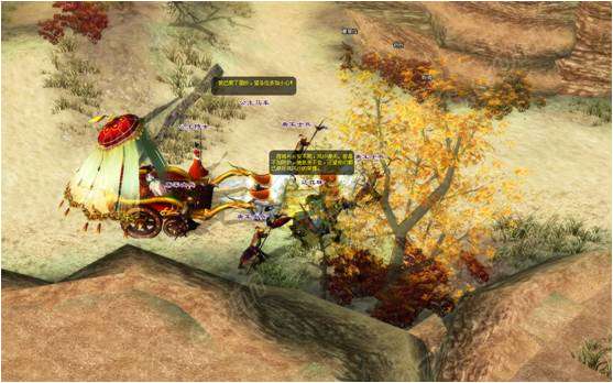 完成前置任务后,接取"【十世镜】西域和亲分飞雁"任务,进入河西走廊,护送公主和亲队伍。