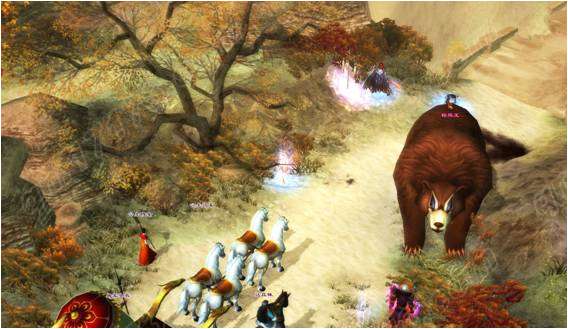 打败一些野生动物后,在桥头会遇到大熊挡路。