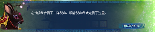 完成寻找兔子的任务以后,才可以领取【河屋中的仙子】的任务,要不然整个任务会是失败的,河屋中的绿绿的水都是毒气,不要走进去,进去就挂了