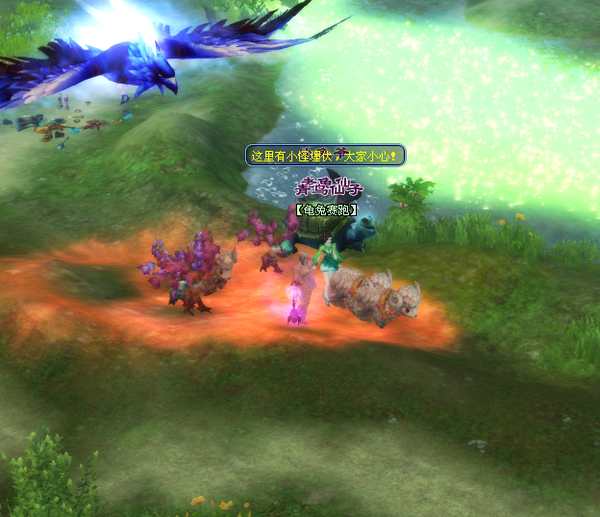 当仙子说:这里有小怪埋伏,大家小心,就要刷怪了!消灭小怪们即可!